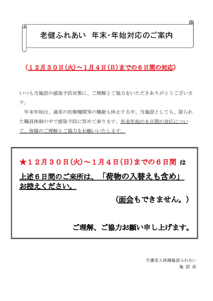 年末・年始対応のご案内